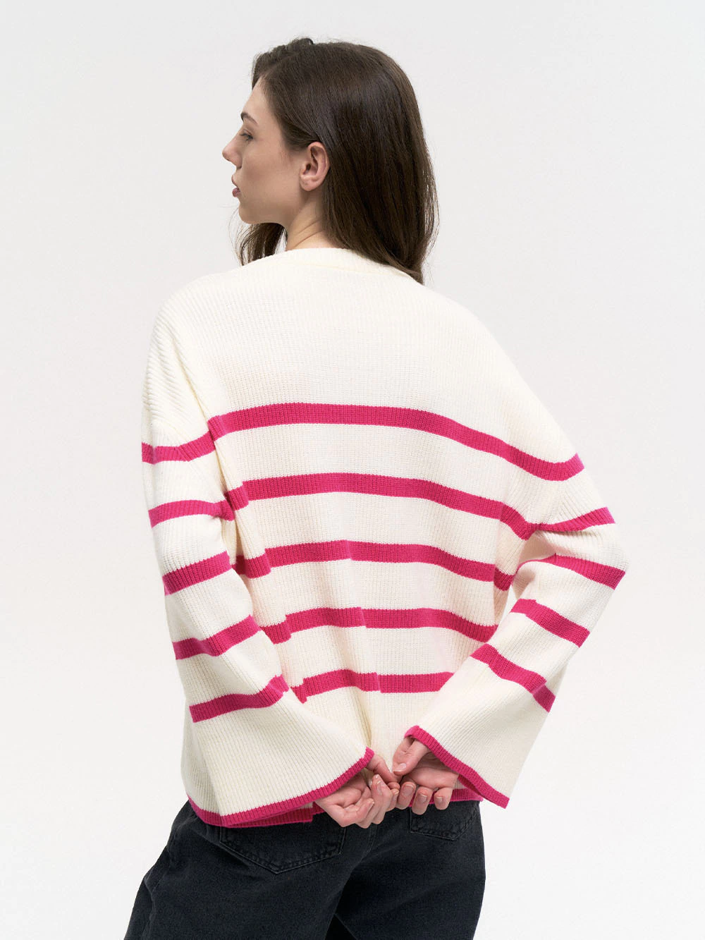 Sweater rayado amplio con manchas anchas.La modelo lleva un talle único en fucsiaHILADO: LANILLA