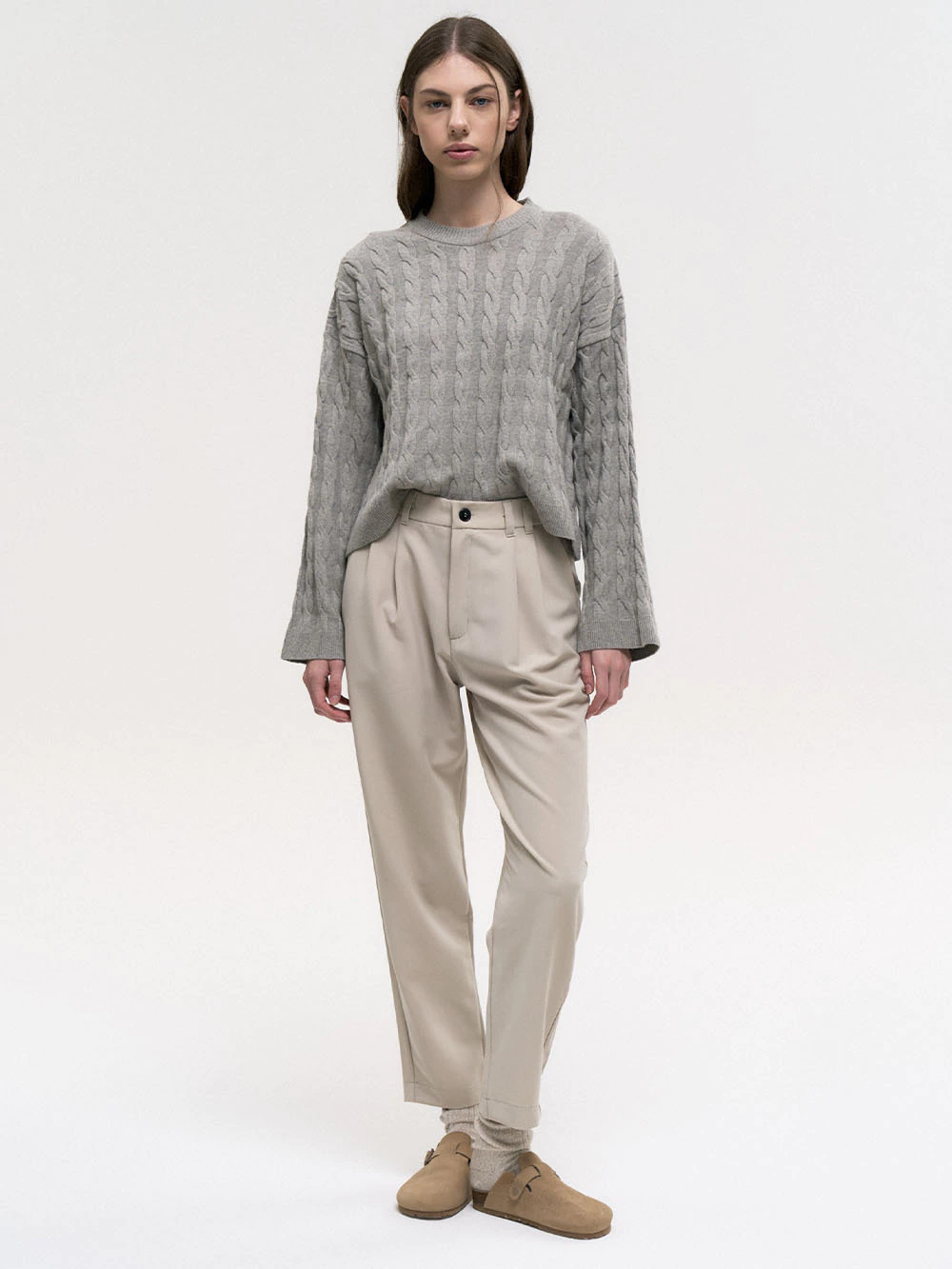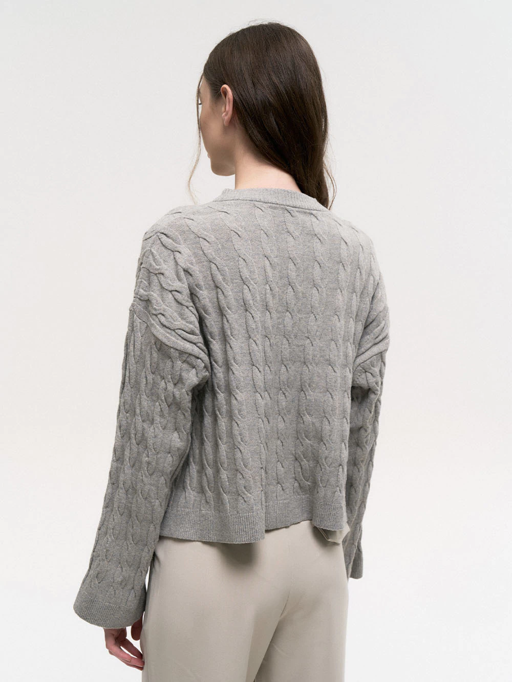 Sweater trenzado con mangas anchas.La modelo lleva un talle único en cemento.HILADO: LANILLA
