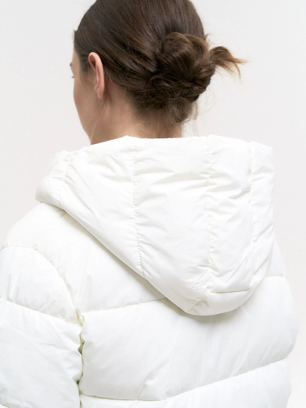Campera estilo puffer con bolsillos y capucha desmontable. Lleva un bolso del mismo color y material para su guardado. Producto importado y exclusivo de SKY.