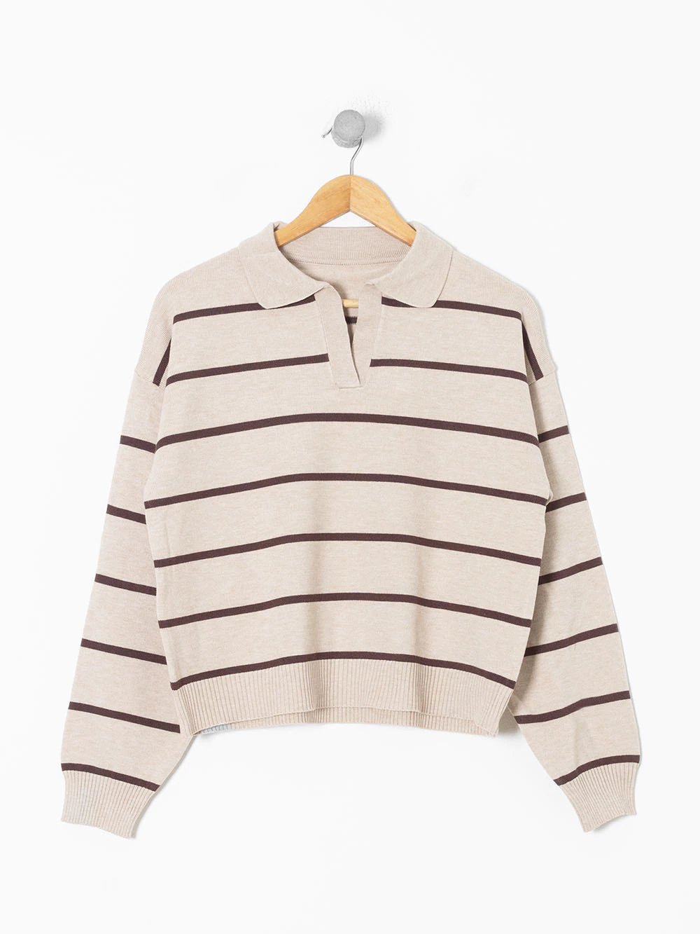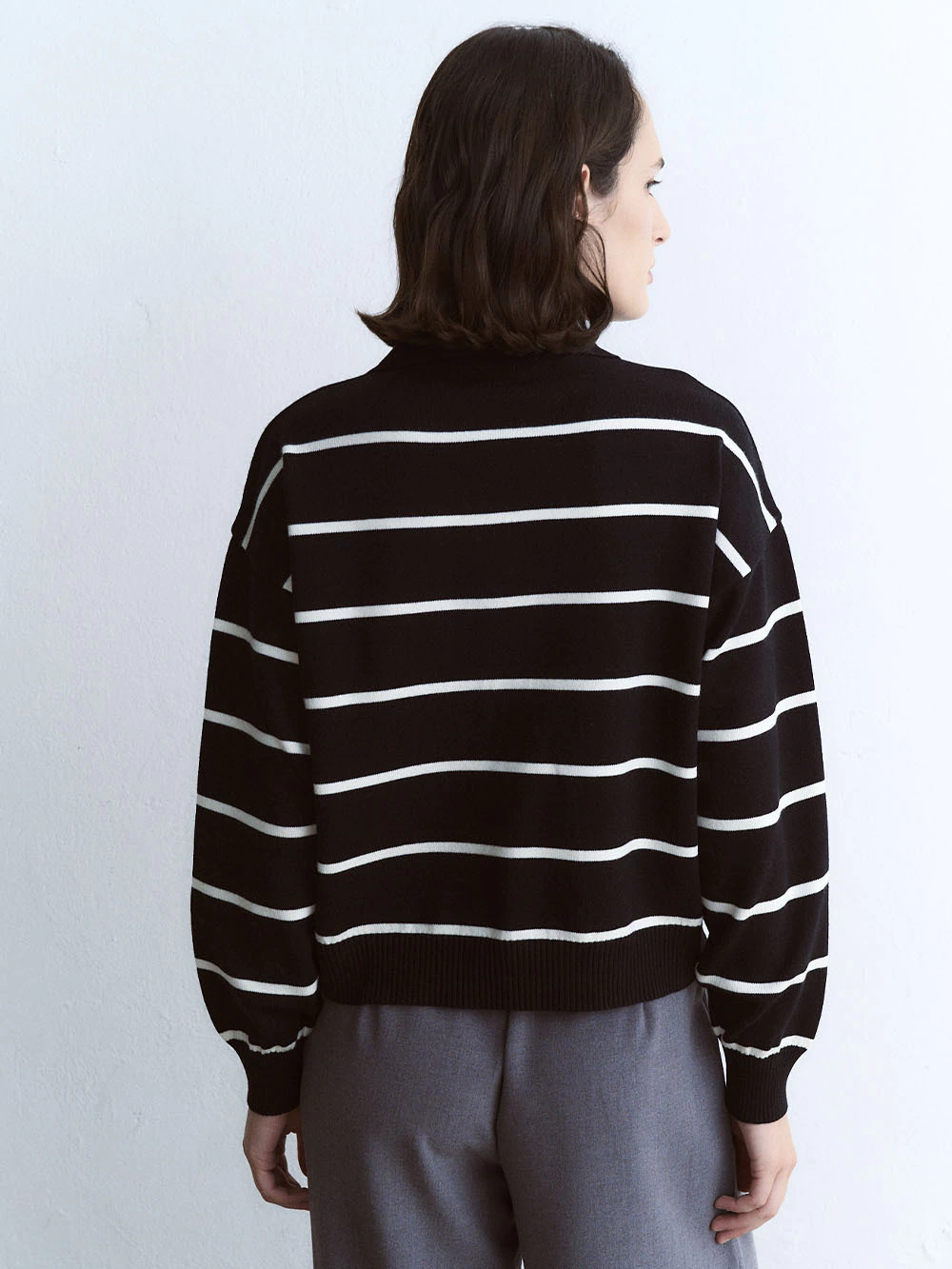 Sweater polo raya finaLa modelo lleva un talle único en negro y gris oscuroTELA: LANILLATABLA DE MEDIDAS: