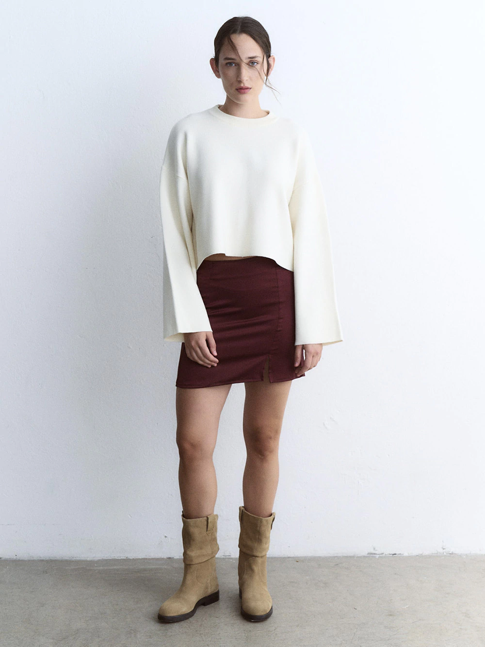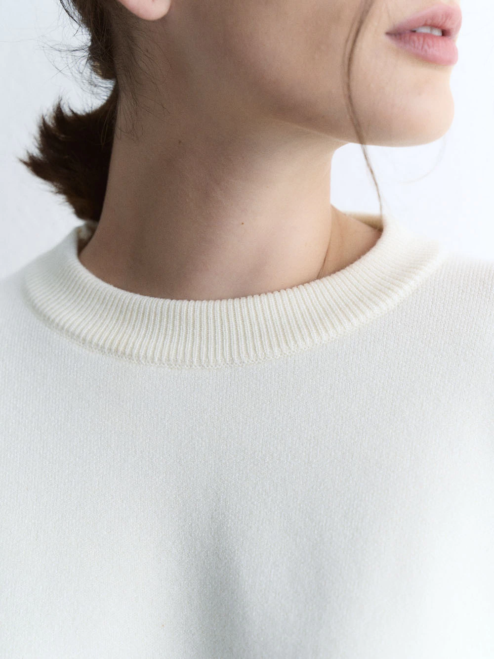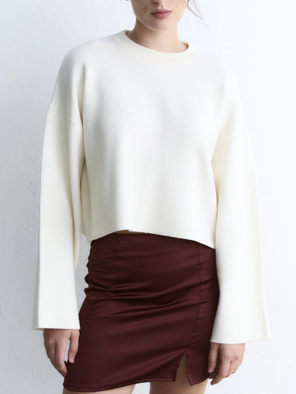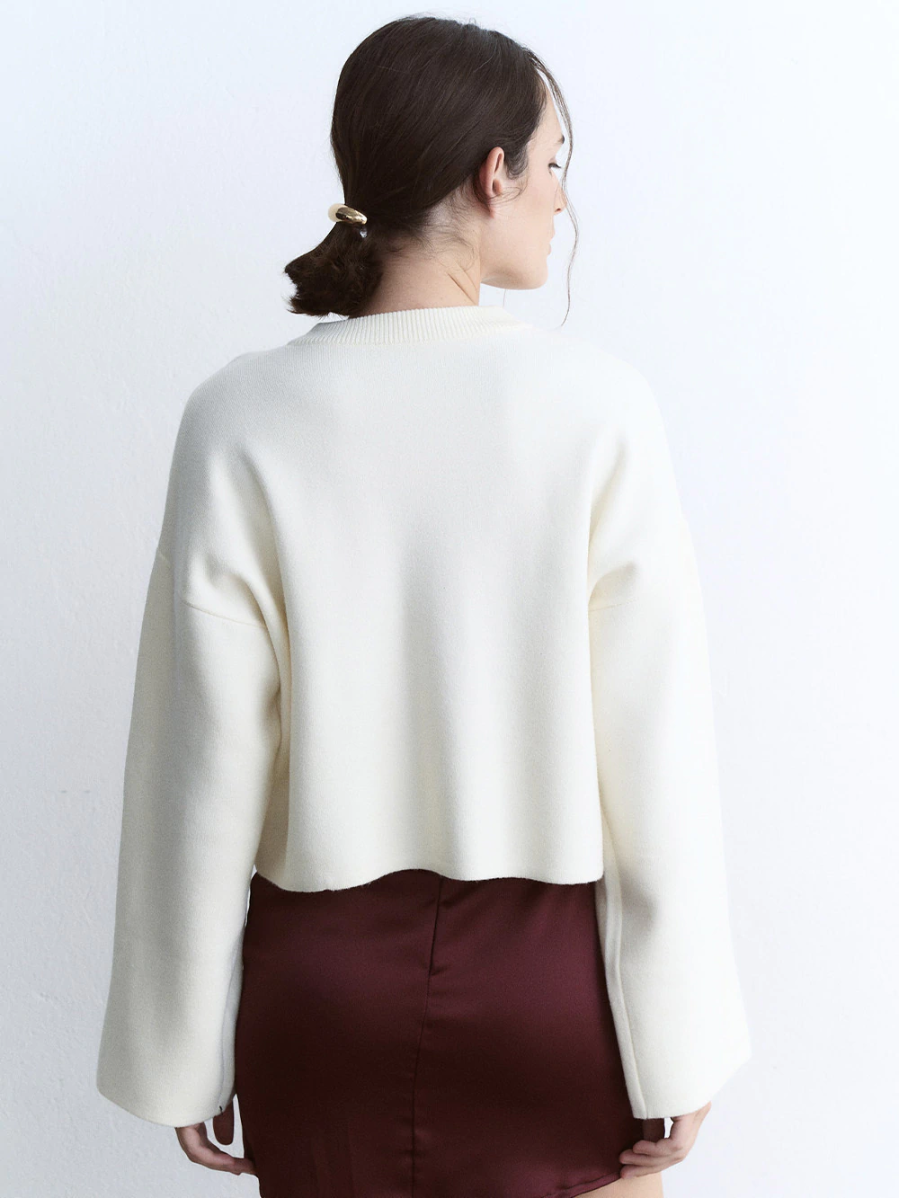 Sweater básico con mangas anchas La modelo lleva un talle único en cremaTELA: 100% poliéster TABLA DE MEDIDAS:
