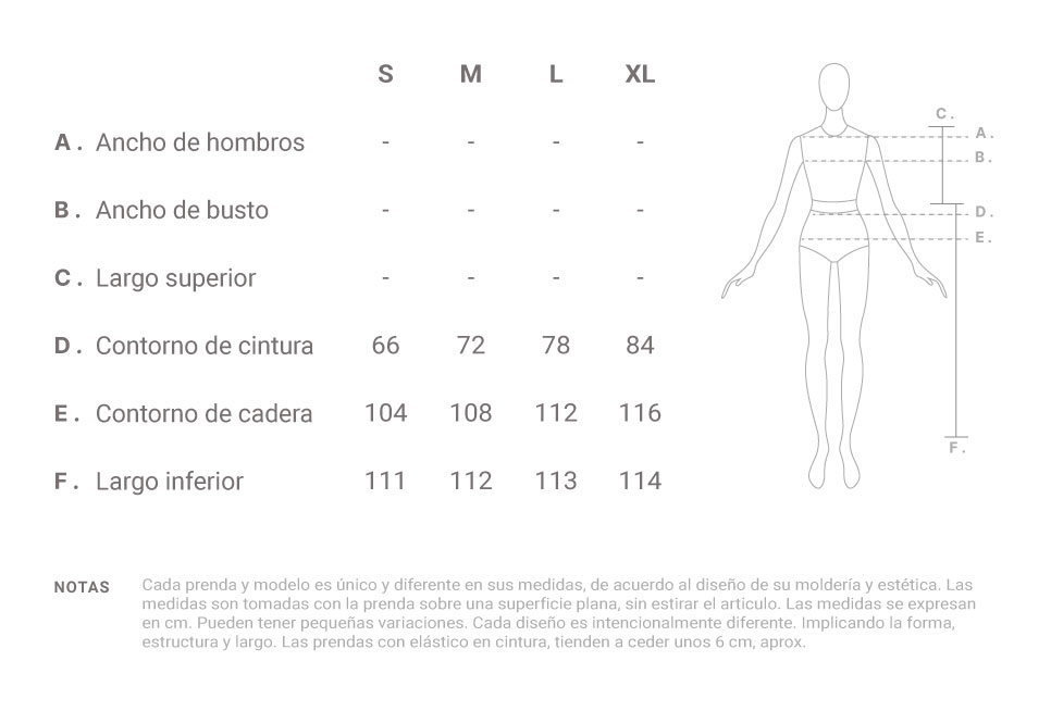 Wide leg con doble pinza para mayor amplitud y bolsillos delanteros. Espalda con pinzas y bolsillo no funcional. Cierre frontal con cremallera y botón a tono.