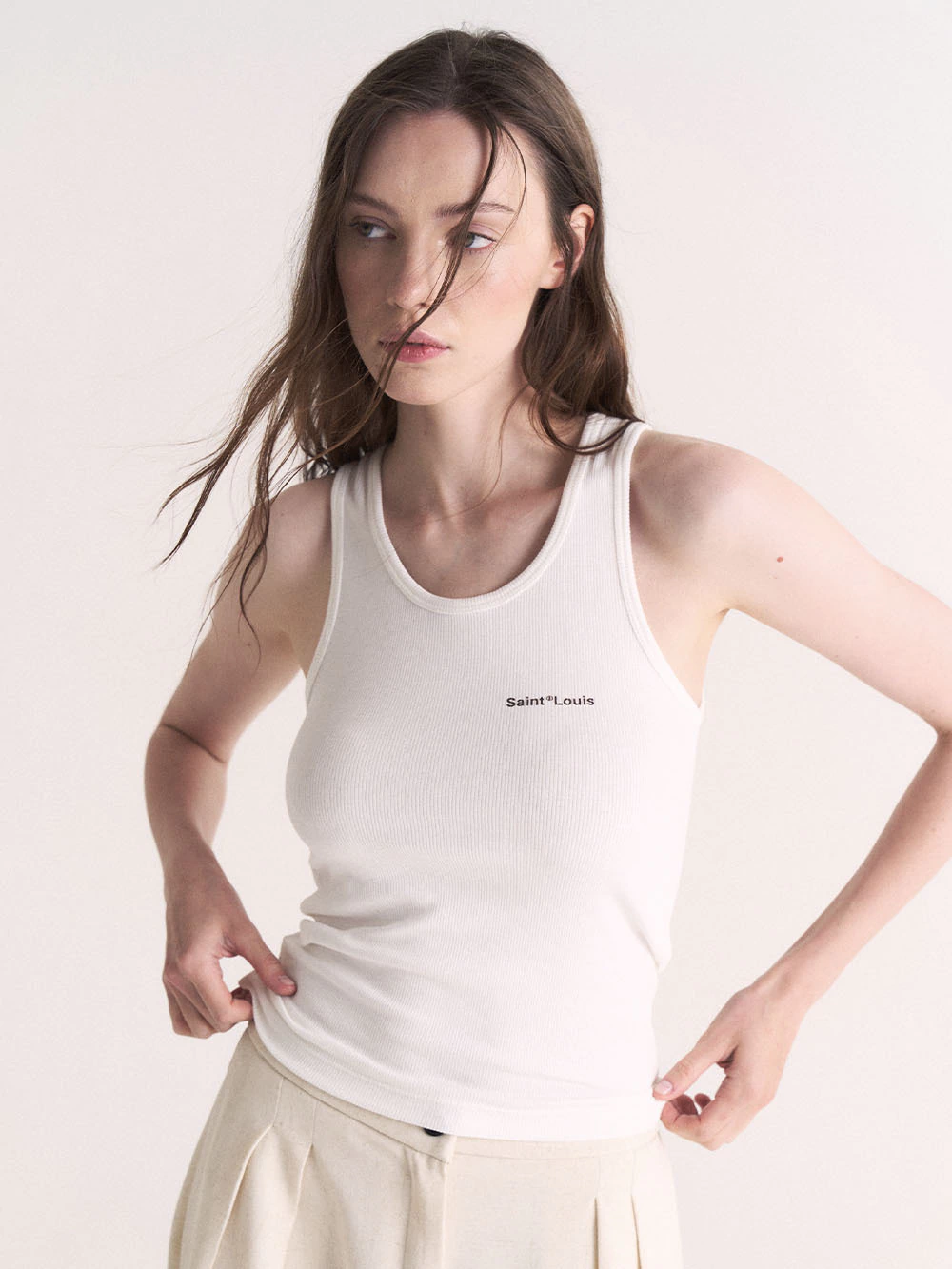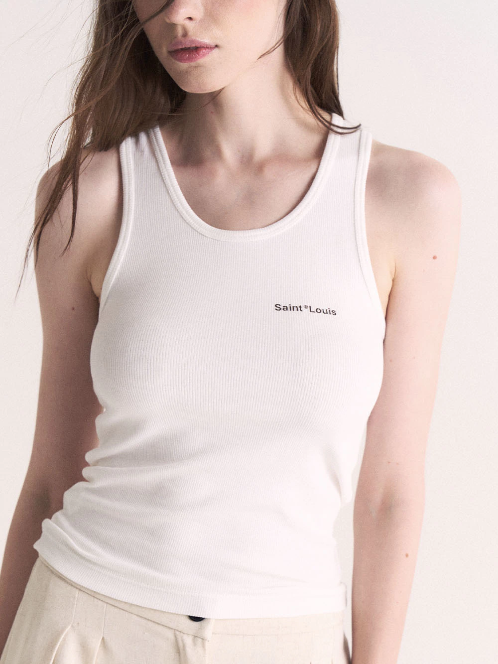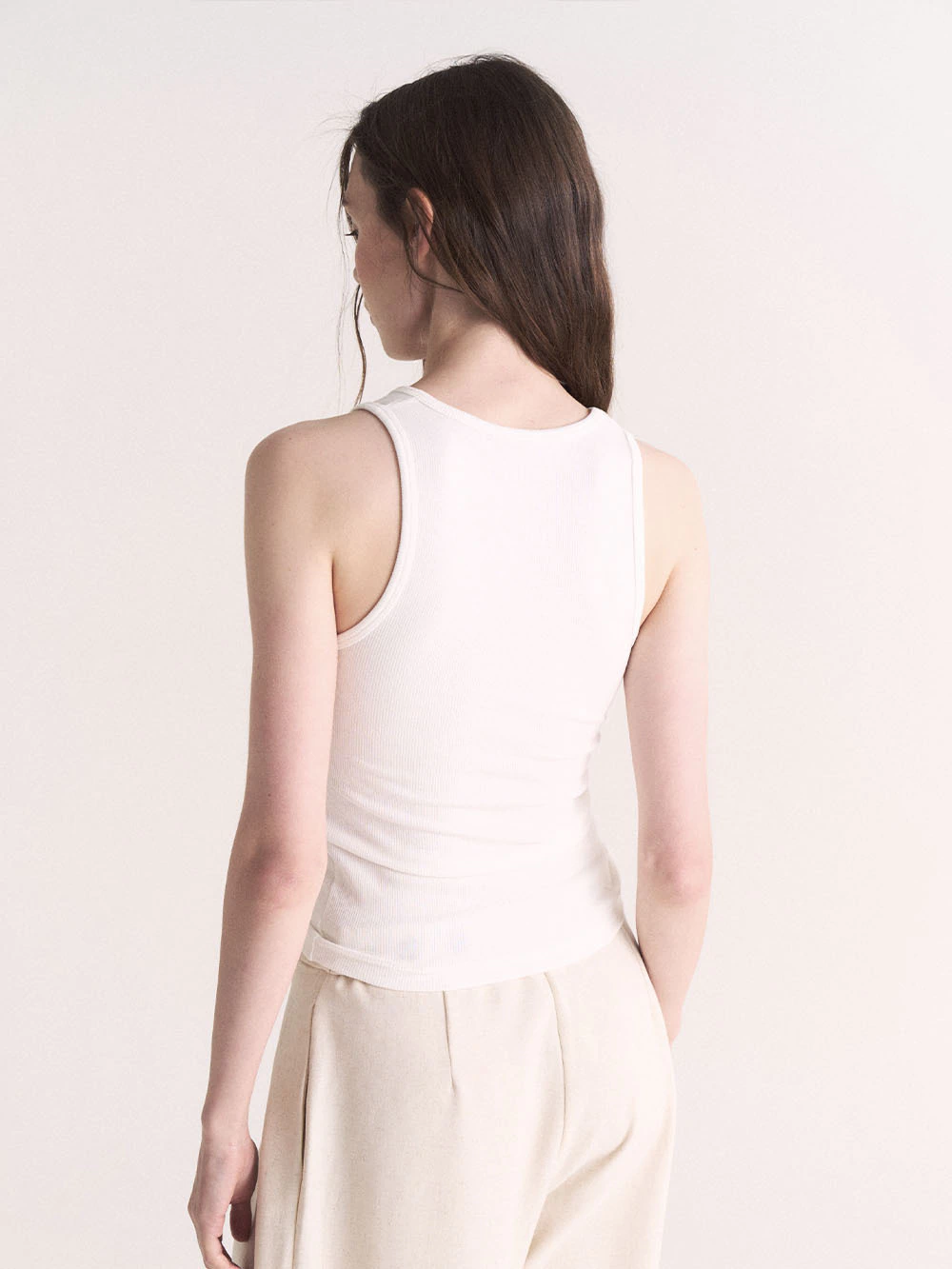 Top básico con estampa en el delantero. La modelo lleva un talle S en blanco. TELA: MORLEY DE ALGODÓN