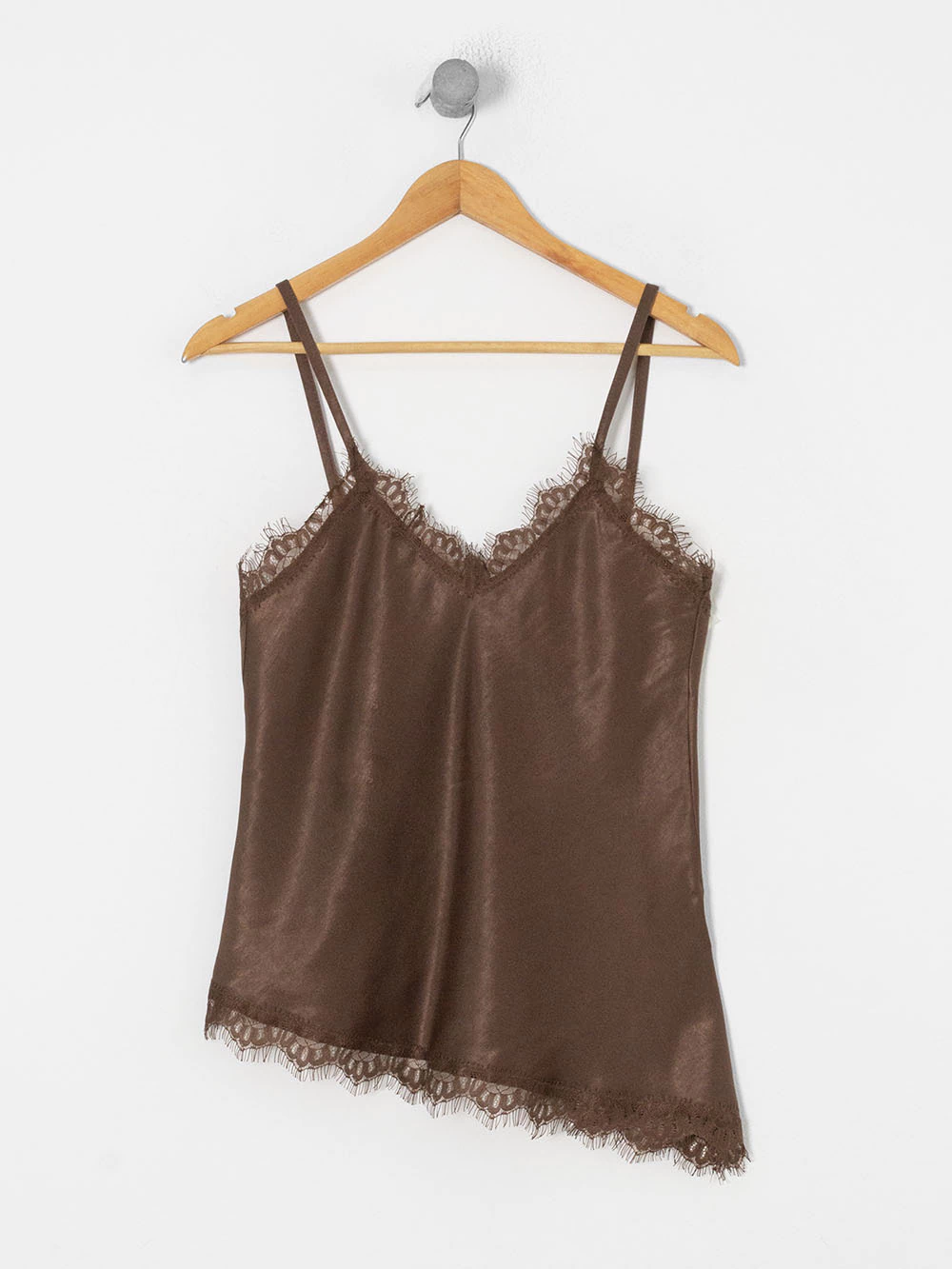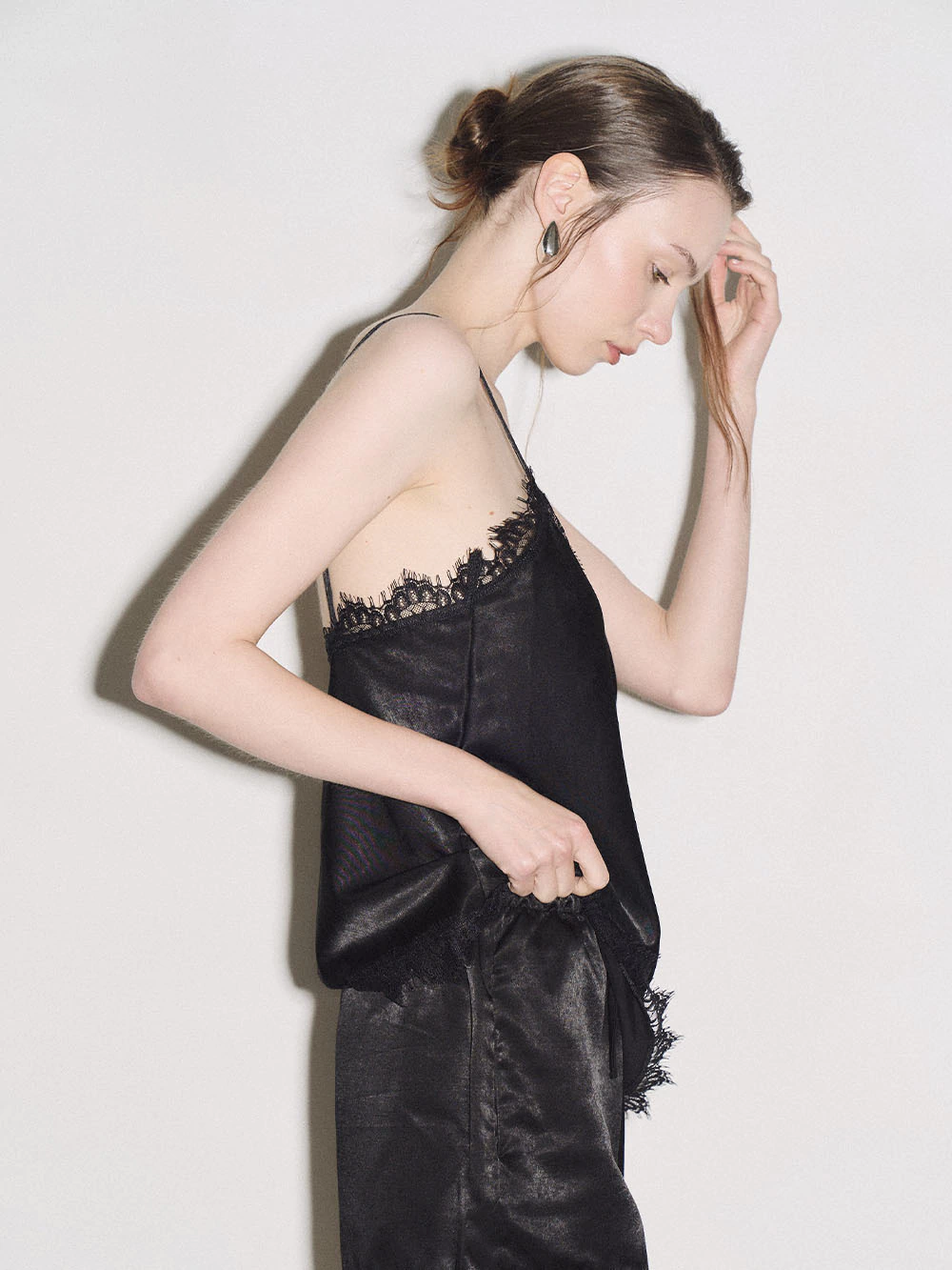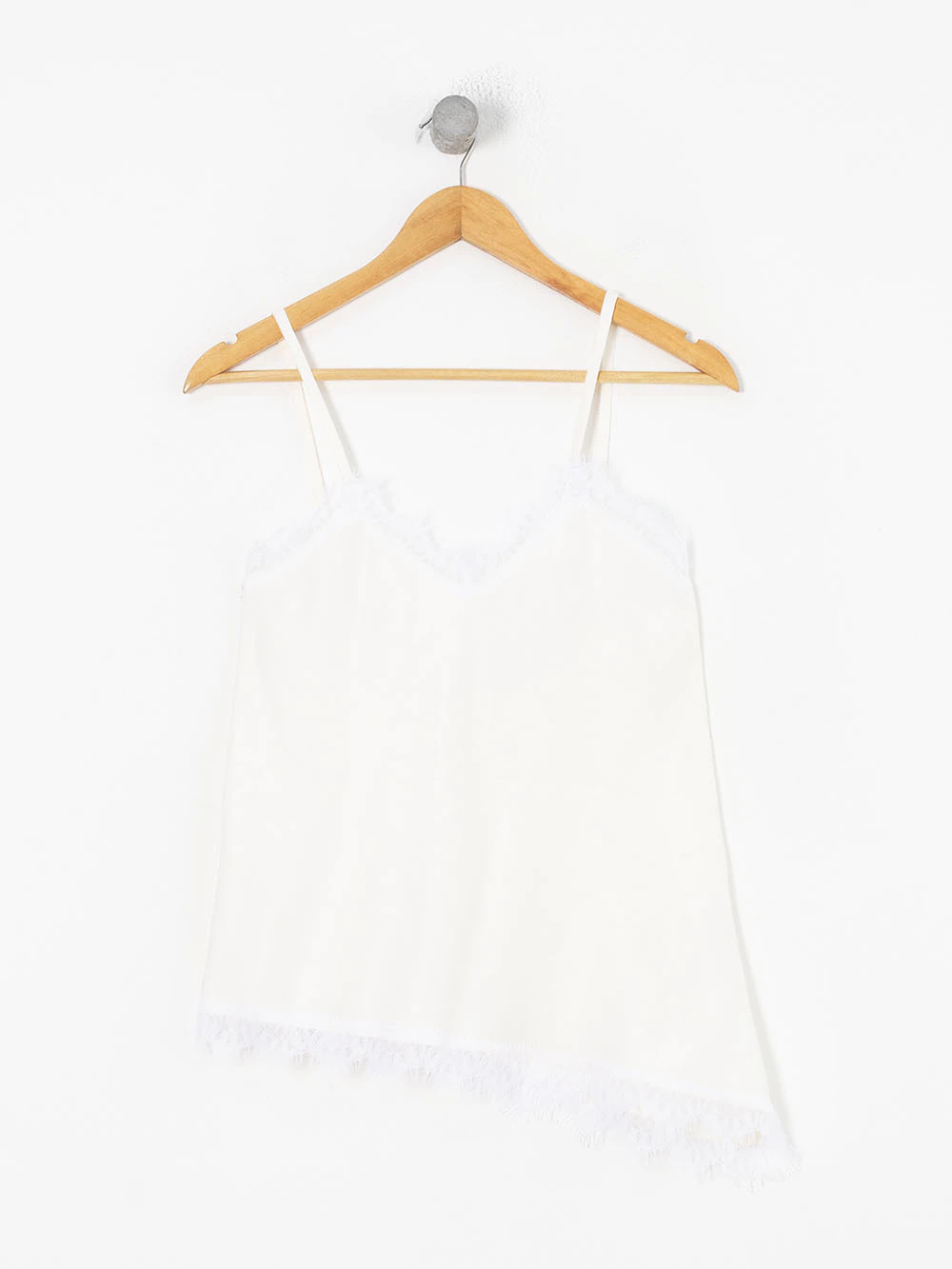 Top asimétrico con escote V. Encajes en el escote y el ruedo.La modelo lleva un talle S en negro. TELA: SEDITA